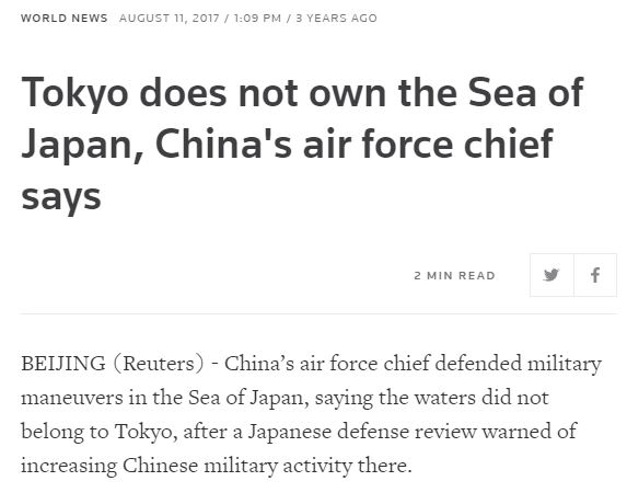visited your website https://www.reuters.com/article/us-china-japan-defence/tokyo-does-not-own-the-sea-of-japan-chinas-air-force-chief-says-idUSKBN1AR0AE and was deeply distressed to find that you have
