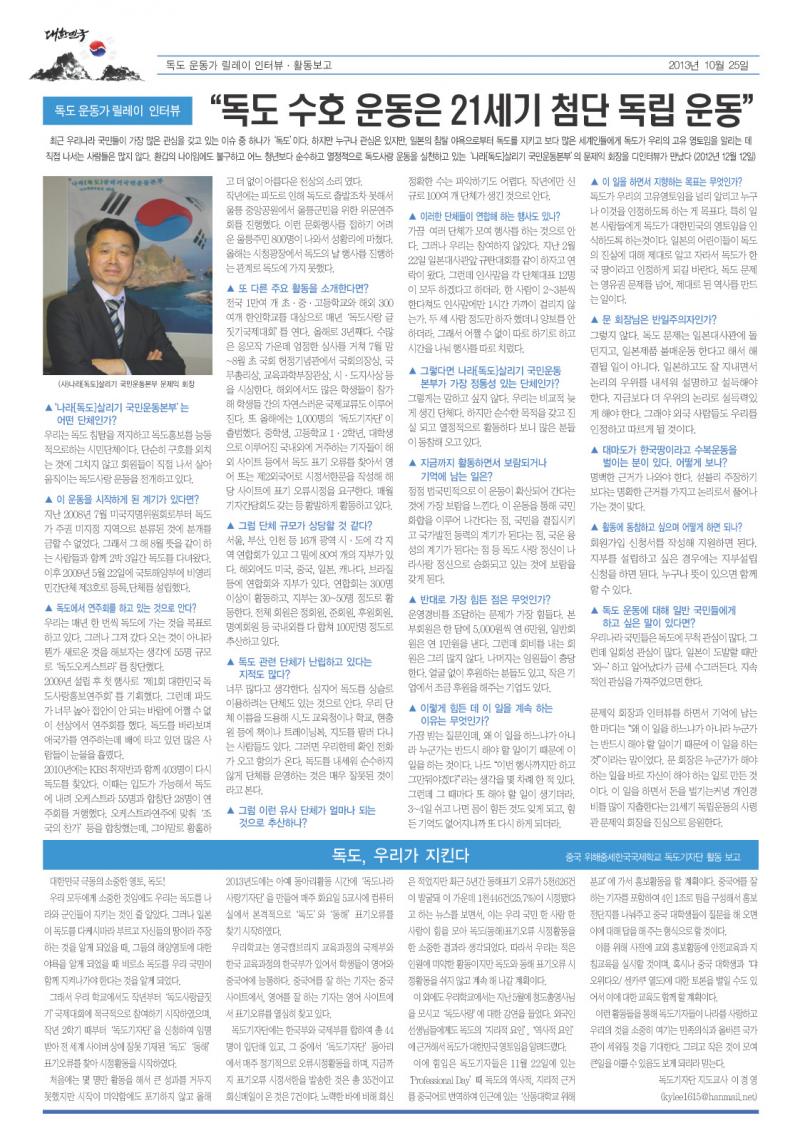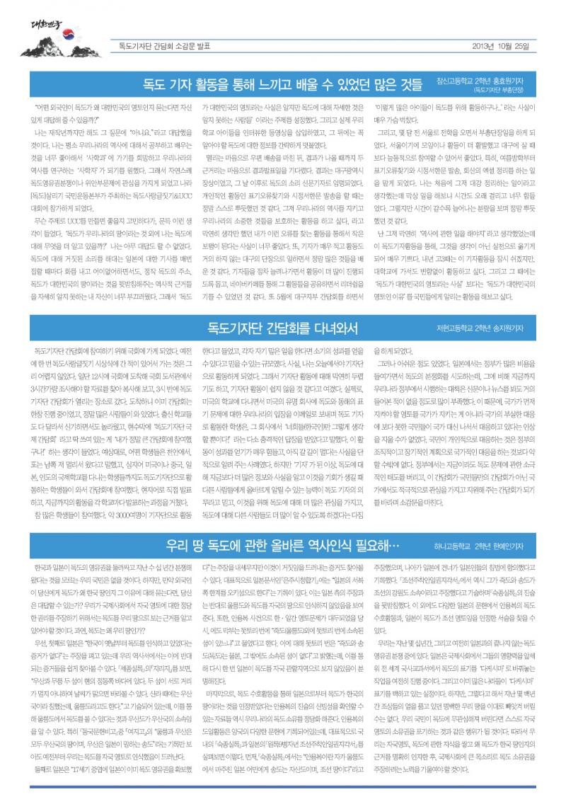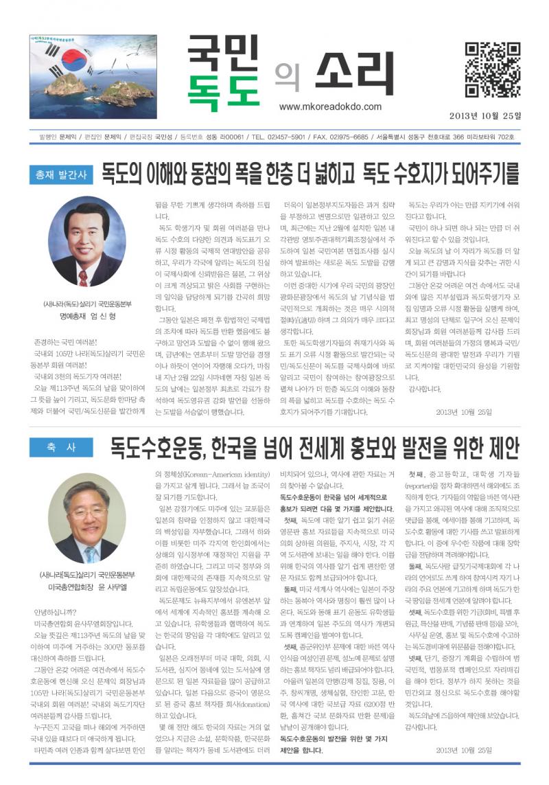 Áö³ 10¿ù 25ÀÏ ¹ß°£ ¹èÆ÷ÇÑ " ±¹¹Î,µ¶µµÀǼҸ® ½Å¹® " µîÀçÇÕ´Ï´Ù.